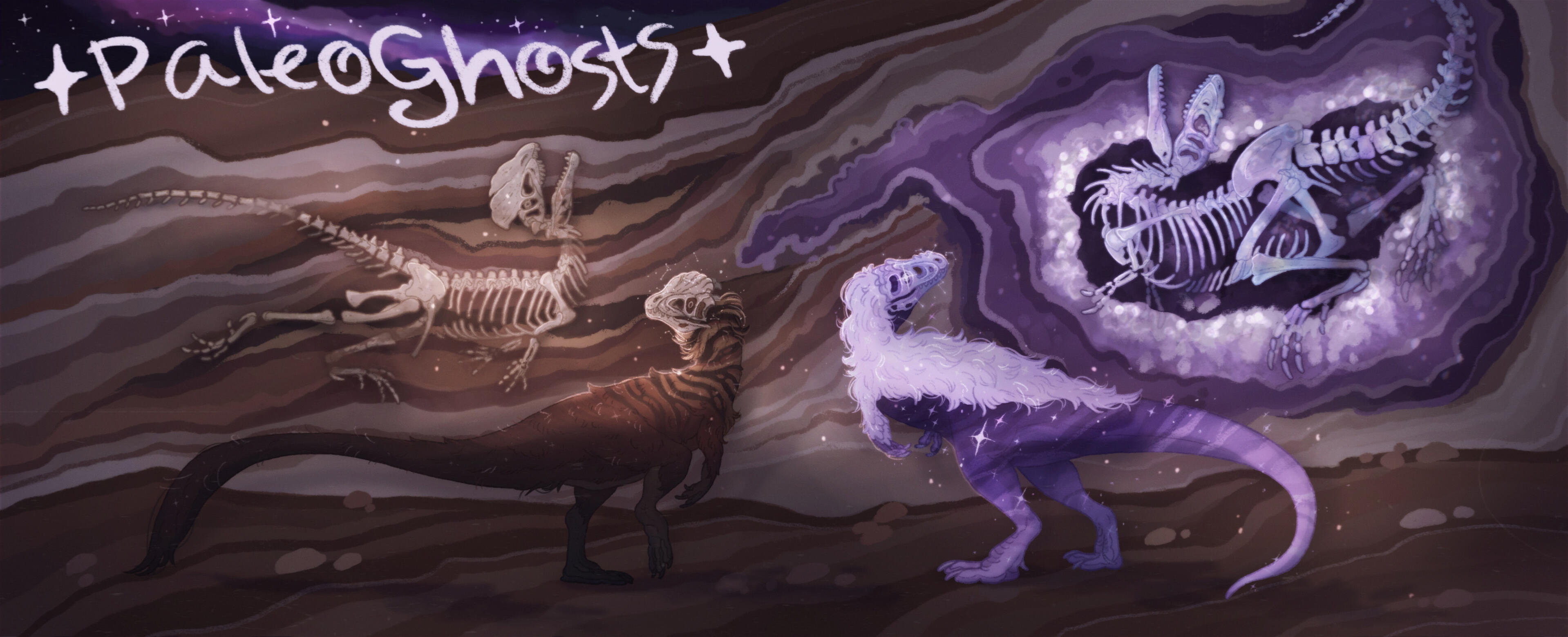 HELLO & WELCOME TO PALEOGHOSTS!PaleoGhosts are an open species inspired by the themes of fossils & paleontology, nature, extinction, death & decay, ghosts & spirits, ethics and conservation, and connection with the past!They are the ghostly souls of long dead prehistoric creatures, that are awakened from a fossil that their spirit is still tethered to by unfinished business. The defining features being an exposed skull head as well as a natural / elemental theme.