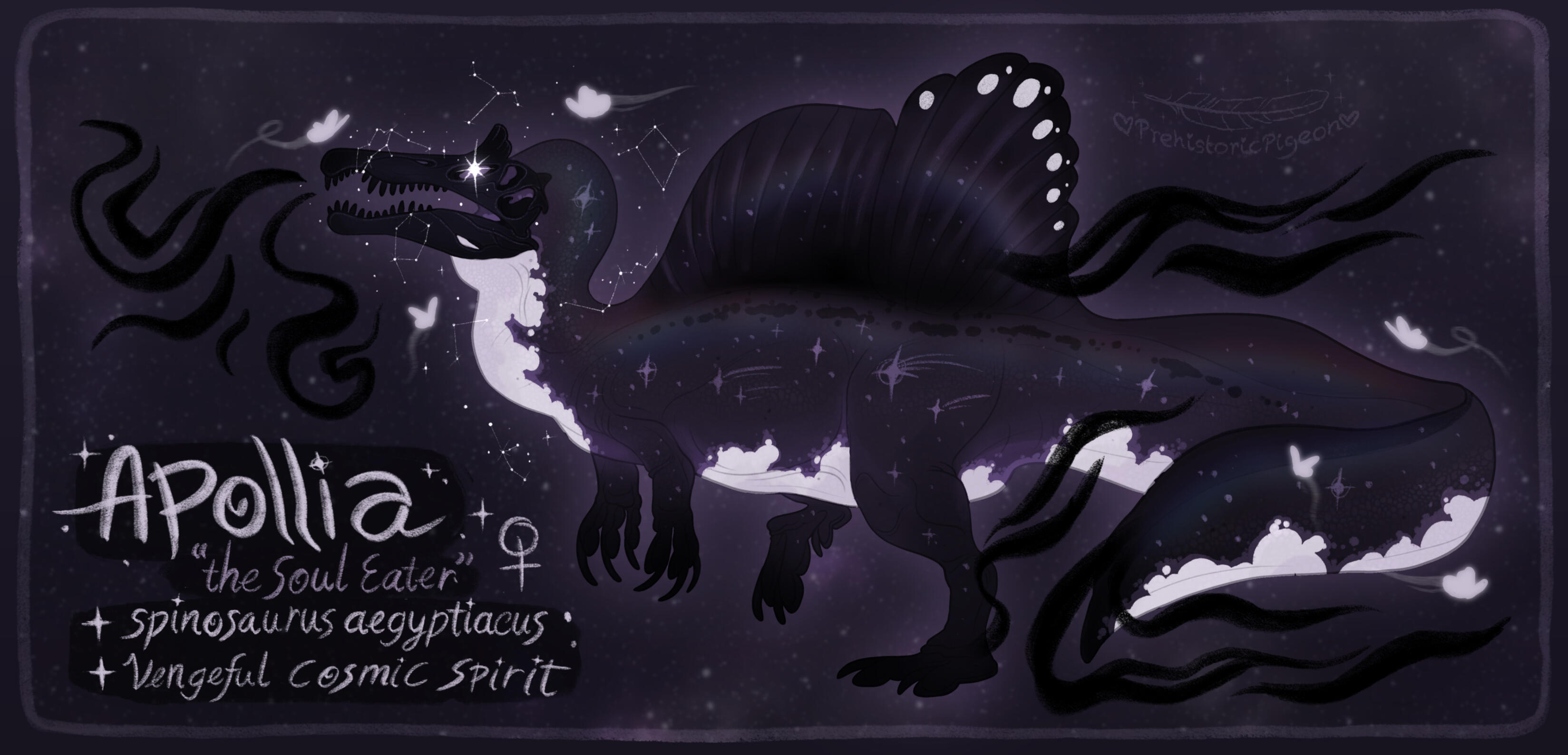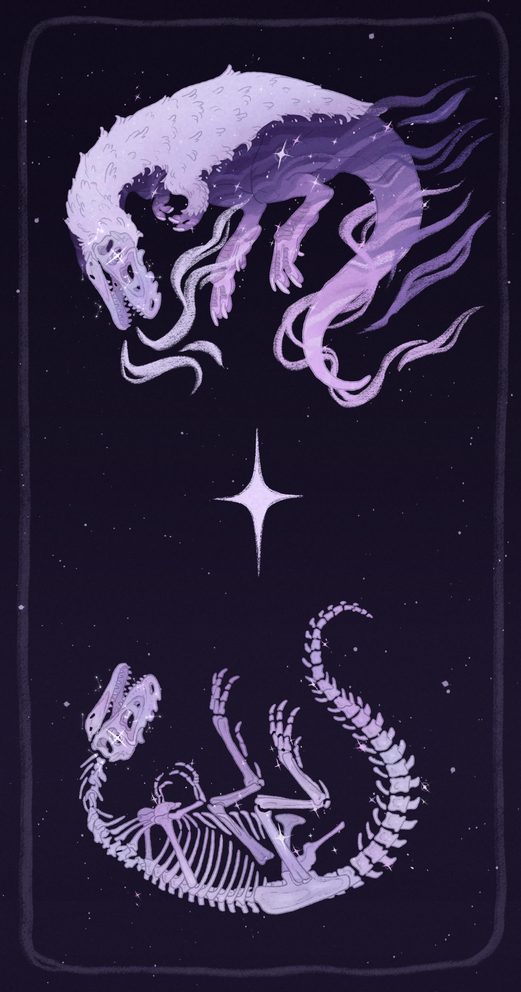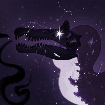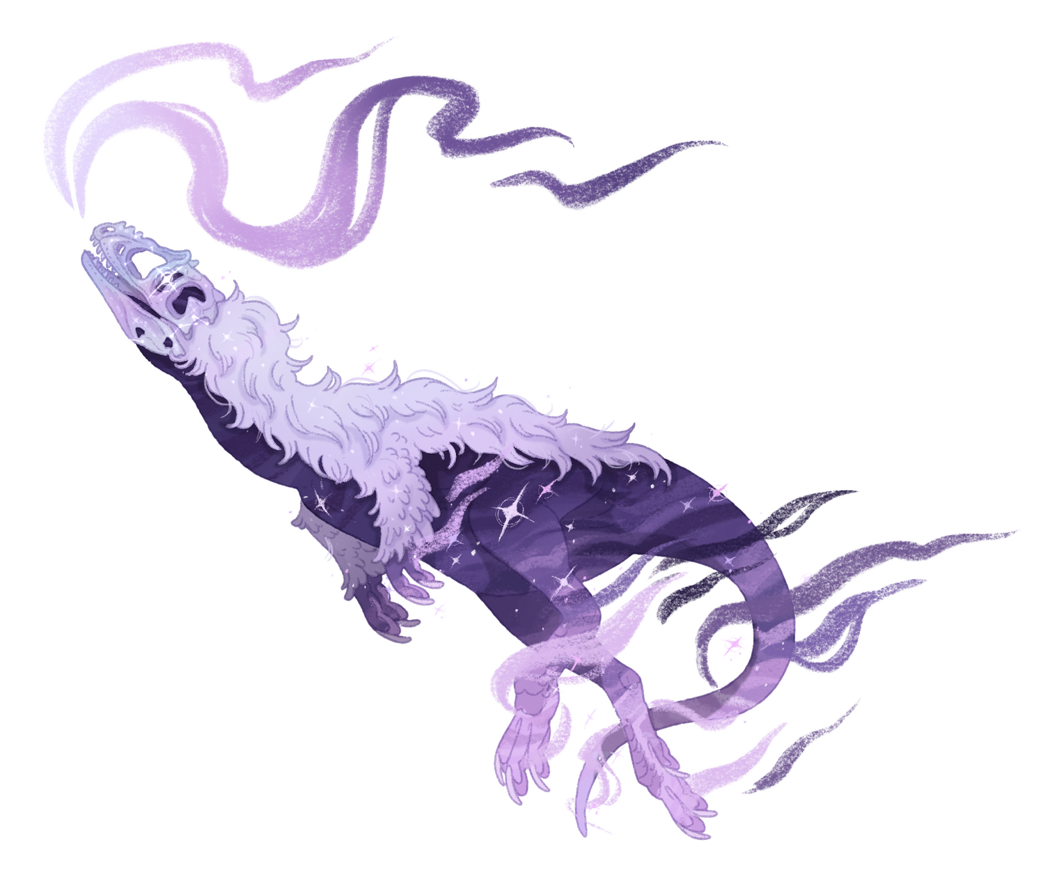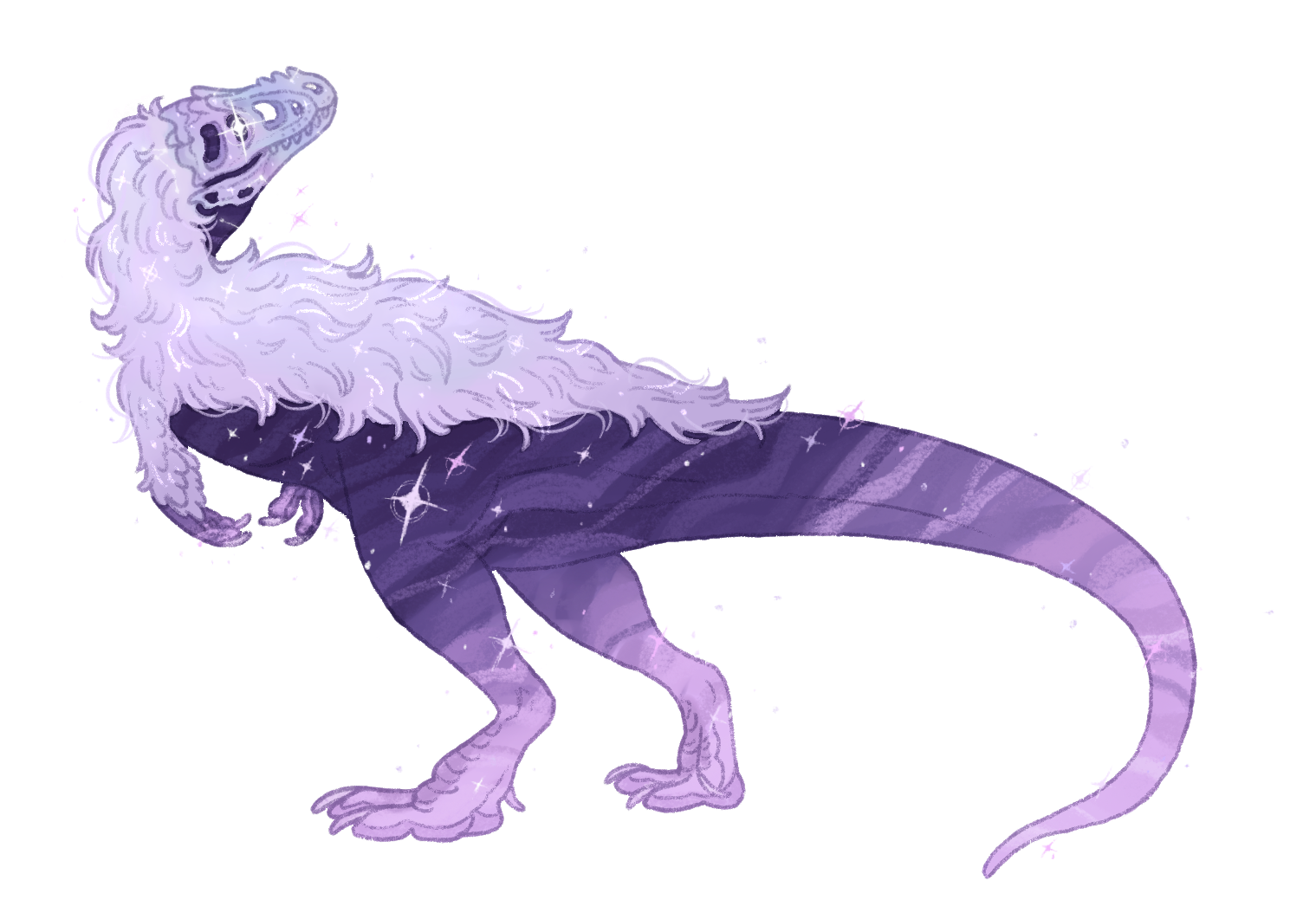 As a result her bones shimmer with iridescent tones, and their hide displays all the shades of amethyst. The falling star fragment that killed her shines in place of an eye, and the constellations she guides souls through twinkle around her.Nowadays they observe paleontologists and other humans as they discover and preserve the remains of all the prehistoric creatures they have so closely guarded over the years.
