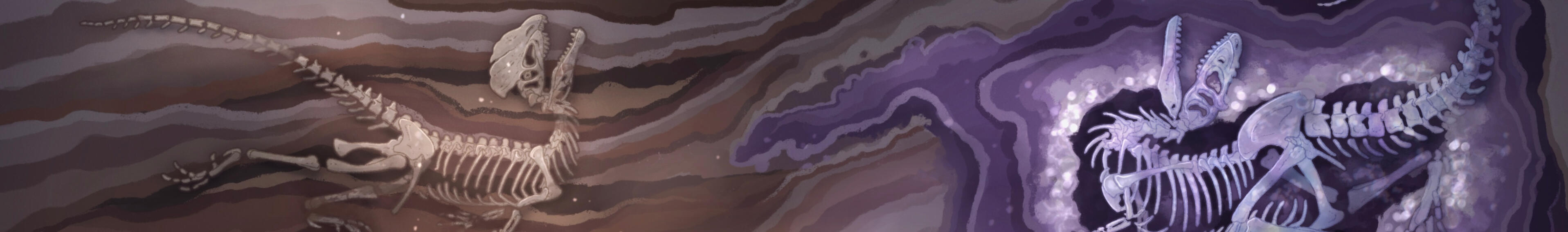 Not even a day had passed when the rain finally returned, a deluge that quickly filled all the dried lakes and riverbeds and revived the plants, and later, the larger life. As if to spite him one last time, Skully’s body was immediately covered by water and there his skeleton began to fossilize, covered by layers and layers of sand and sediment that eventually became sandstone.This final blow of cruelty from nature was too much, and his spirit did not depart from his body, bound to it with a sense of injustice even stronger than death. And there his spirit stayed, dormant and unaware, until a lonely wandering spirit came across it by chance, 136 million years later, and woke him.